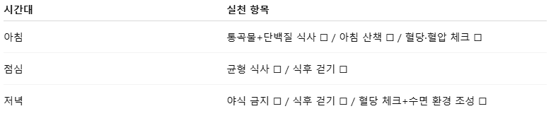 오늘은 이렇게 혈당·혈압을 위한 24시간 골든타임 실천법을 함께 살펴보았습니다.